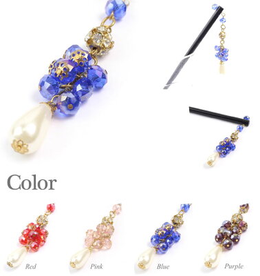 【ゆうパケットOK】かんざし/ゆらゆらクリスタルビーズ&パール フリンジ風 お箸かんざし スティック 簪 s48☆赤/ピンク/青/紫 髪飾り ヘアアクセアリー まとめ髪 七五三 成人式 浴衣 夏祭り 花火大会 着物 和装【あす楽対応】