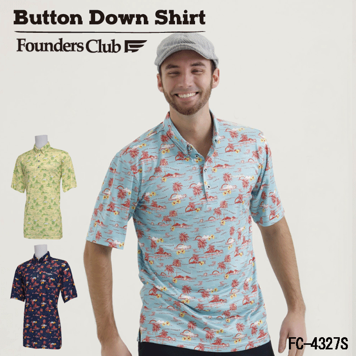 【2021年春夏モデル】FoundersClub ファウンダース ファウンダースクラブ メンズ ゴルフウェア 半袖 ボタンダウンシャツ ポロシャツ アロハ柄 おしゃれ fc-4327s
